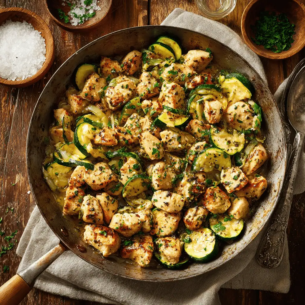 A quick and fragrant dinner that tastes like comfort without any heaviness. The garlic butter makes the chicken juicy, while zucchini adds a subtle sweetness and texture. It’s simplicity at its best.